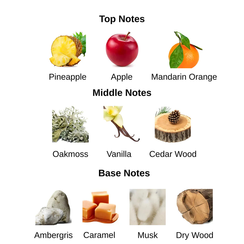 • Base Notes: Ambergris, Caramel, Musk, Dry Wood