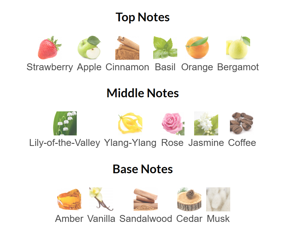 Top Notes: Strawberry, Apple, Cinnamon, Basil, Orange, Bergamot